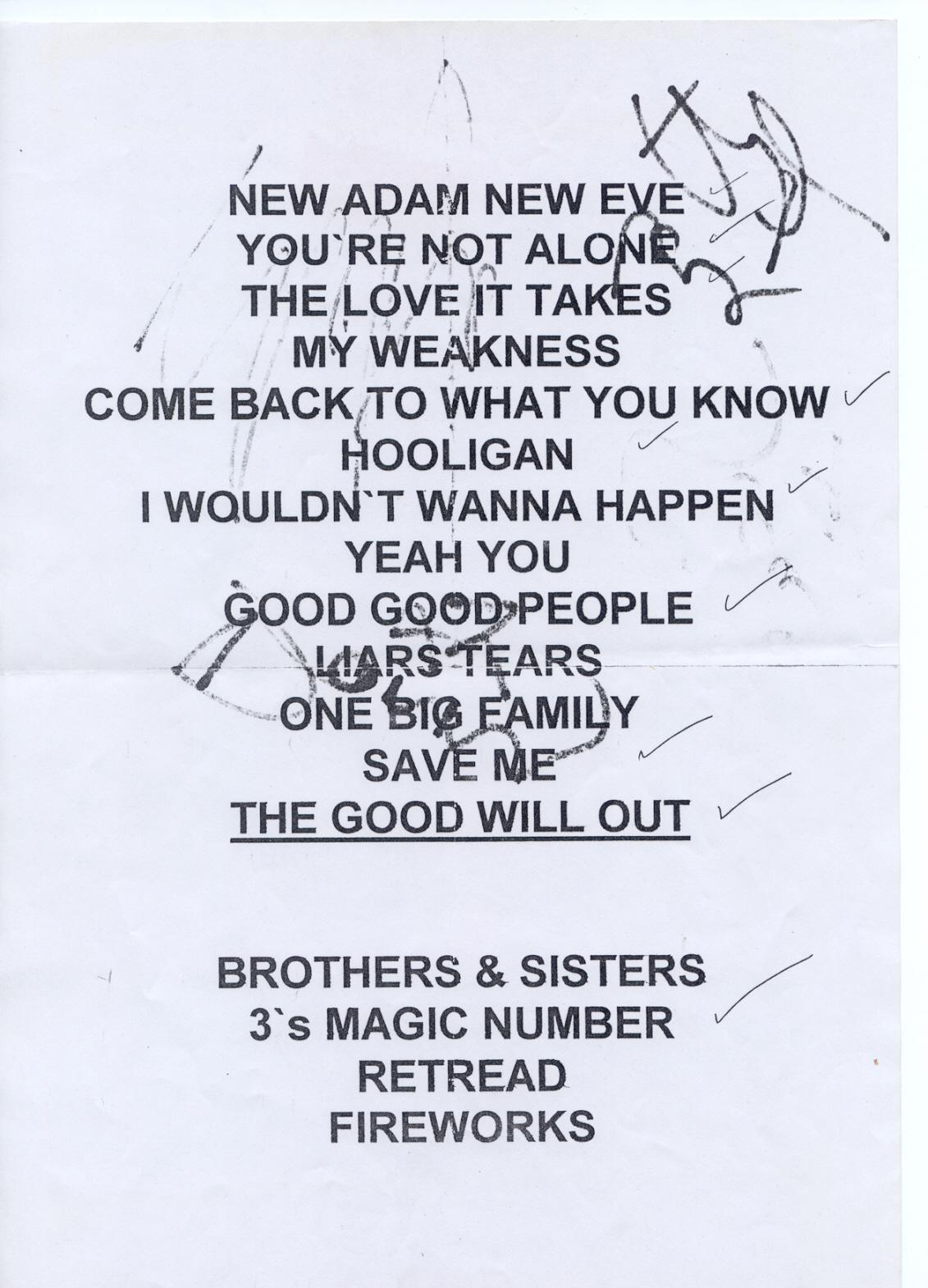 Set list!!!